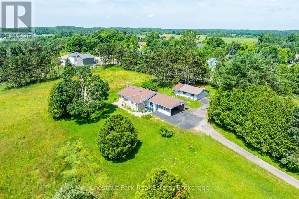 Perched on the west side of Bracebridge with road access to both Hwy 118W and the Covered Bridge subdivision, this 4-acre parcel, a former orchard of the farm that has been in the family for more than 80 years, presents a rare opportunity to own one of the towns most unique and promising properties. Set on a gentle rolling hill sloping south-east, the property offers panoramic, unobstructed views over the treetops of West Bracebridge all the way south to the forested treeline of the Muskoka River, capturing the natural beauty of the Muskoka landscape. With full municipal services available at the north lot line, this in-town location provides the perfect blend of convenience and seclusion. Zoned and located within the Town of Bracebridge, this meticulously cared for property represents a unique convergence of size, location, natural beauty, and servicesall within town boundaries. Properties of this scale and setting rarely come to market, especially those with investment and severance potential offering such a compelling future. The land itself is a picturesque mix of open spaces, manicured lawns, and a blend of professionally maintained shade trees and mature conifers with excellent drainage. At the centre of the property sits a solid, brick, ranch-style bungalow offering approximately 1,500 sq ft of living space, plus a full basement. The home has been lovingly and thoughtfully maintained, including a new furnace powered by natural gas, modern kitchen appliances, updated bathrooms, and enhanced exterior lighting on both the home and large, detached garage. The steel-roofed, windowed garage offers workshop facilities and vehicle storage. (id:6289)