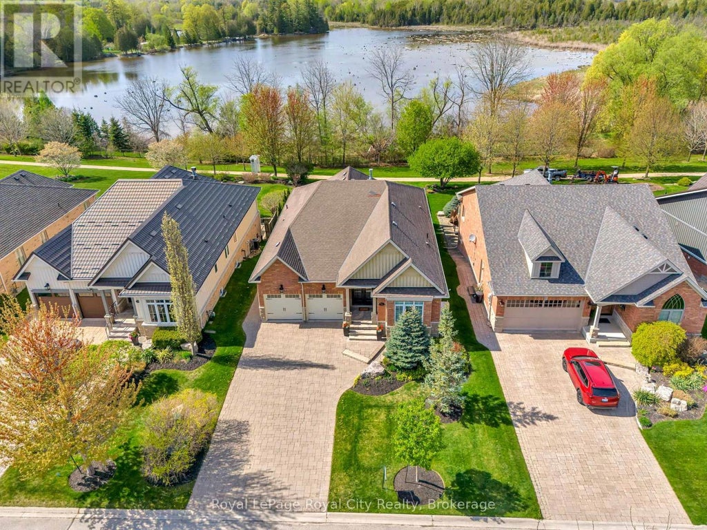 Discover UNPARALLELED SERENITY and privacy in this EXCEPTIONAL BUNGALOW, perfectly situated within a close-knit, PRIVATE quiet community. Imagine stepping out from your home directly onto the tranquil shores of Mill Pond, with exclusive access to over 20 acres of pristine trails and picturesque forest. One of only ten homes BACKING ONTO THE POND this property offers a rare opportunity to enjoy nature's beauty steps away from your back patio and deck.Inside, the main floor boasts TWO SPACIOUS BEDROOMS PLUS A DEN, ideal for guests or a home office. The VAULTED CEILINGS and open-concept formal dining area create an airy, inviting space perfect for both relaxing and entertaining. The well appointed kitchen offers B/I Microwave and WALL OVEN, GLASS COOKTOP, PANTRY AND WINE RACK, further complemented with a GRANITE topped island with extra seating. The living room boasts a striking FEATURE WALL of BUILT-IN CABINETRY and shelving surrounding a gas fireplace. The spacious primary has all the extras with a W/I CLOSET and ENSUITE with GLASS SHOWER and CORNER SOAKER TUB for R and R.Sweeping VIEWS OF THE POND and surrounding greenery will be the mealtime views off the COMPOSITE DECK accessed via FRENCH DOORS off the dinette. Choose between the Two Gas BBQ lines for your al fresco dining options.The FINISHED WALK OUT BASEMENT extends your living space with a convenient WET BAR, family room, an additional bedroom, a dedicated gym area, and abundant storage.Thoughtful extras enhance the comfort and convenience of this remarkable home, including an IRRIGATION SYSTEM, a luxurious STEAM SHOWER, a GENERAC generator and PROFESSIONALLY DESIGNED GARDENS ACCENTED WITH STONE LANDSCAPING. This is more than just a home; it's a LIFESTYLE CHOICE for those seeking peace, beauty, and a vibrant community spirit minutes from all the amenities of South Guelph and the 401 for commuters! (id:6289)