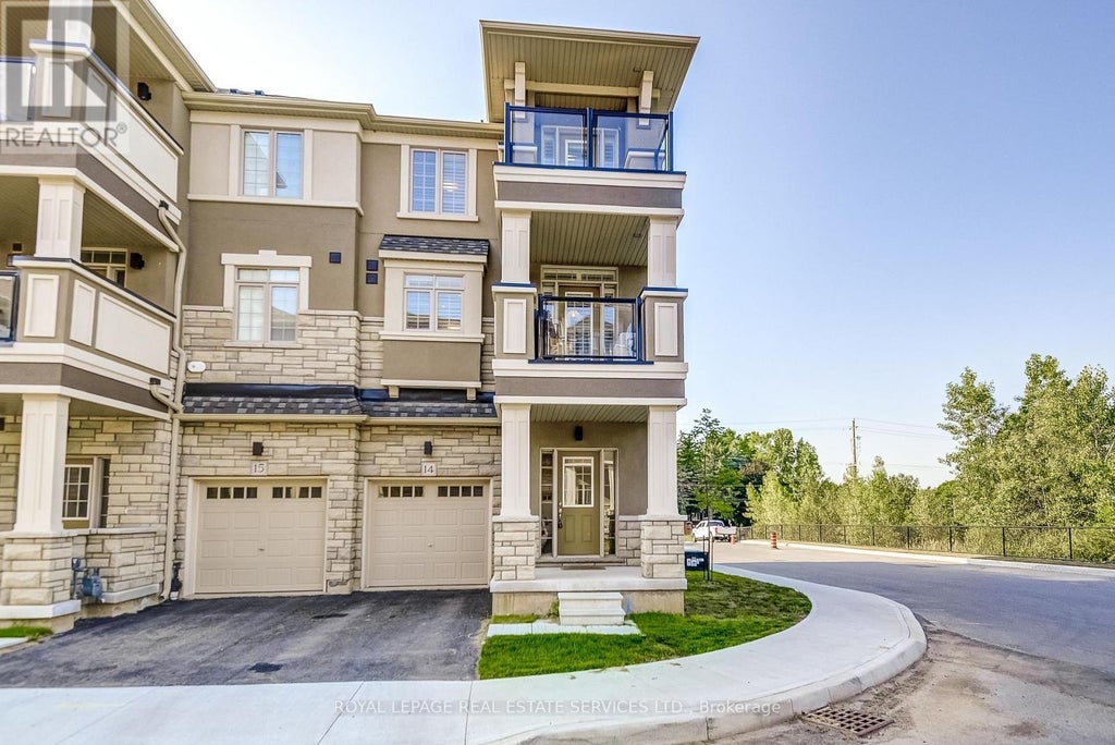 Welcome to 305 Garner Road W #14, a *premium end unit* located in the coveted Treescapes of Ancaster community. This stylish 3-storey townhouse offers 2 bedrooms, 2 bathrooms, 1500 sq feet of finished living space. Move in turn key condition-. END UNIT!, this home benefits from extra natural light, enhanced privacy, and only one shared wall, setting it apart from interior units. Built in 2023, it showcases modern finishes throughout including quartz countertops, stainless steel appliances, California shutters, and sleek laminate flooring. The second level is thoughtfully designed for open-concept living, featuring a bright kitchen, dining area with walk-out to a private deck, and a cozy living space ideal for entertaining. Upstairs, you'll find two generously sized bedrooms, including a primary bedroom with double closets, and convenient bedroom-level laundry. The ground-level foyer offers a handy 2-piece bath and interior access to the garage, while the unfinished basement provides ample storage or future living space. Enjoy the convenience of low condo fees ($127.24/month) and exclusive use of both a private driveway and built-in garage (2-car parking total). Located just minutes from schools, parks, shopping, and Hwy 6, this end unit offers the perfect blend of comfort, style, and location. Book your private showing today and make this exceptional home yours. (id:6289)