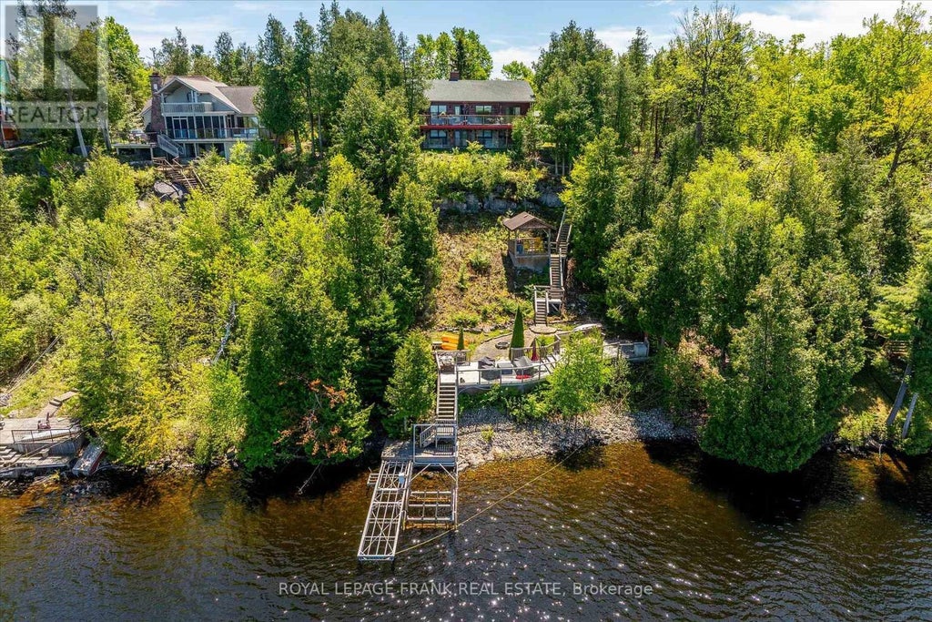 Spectacular million dollar view, weed-free swimming off the dock, gorgeous Confederation log home on Pigeon Lake on the Historic Trent Severn Waterway. Check out this lovely private setting, through the impressive gates to a lovely fully fenced, landscaped back yard with stone patio and perennial gardens. Extensive armour stone adds to the wow factor of the welcoming post and beam covered deck and entranceway. Enter to a lovely updated kitchen with island, dining room and a central two sided floor to ceiling stone fireplace. The living room, opens to a huge waterside deck, showcasing spectacular sunsets. The East Wing features the primary bedroom with walk-in closet and four piece ensuite. The West Wing has another 4 piece bath, lakeside guest room and third main floor bedroom, presently used as an office. The lower level presents a large family room with walkout, two more bedrooms, third bath and laundry, and a fabulous home gym. There is an abundance of storage room throughout this home. Step into the hot tub room with a wonderful view of the lake, the stairs lead to the clean and deep swimmable waterfront, with dock and boat lift, but don't forget to stop along the way at the tiki-hut and bar. Double detached garage, two sheds, easy access to Buckhorn and all amenities. 1.5 hours from the GTA. (id:6289)