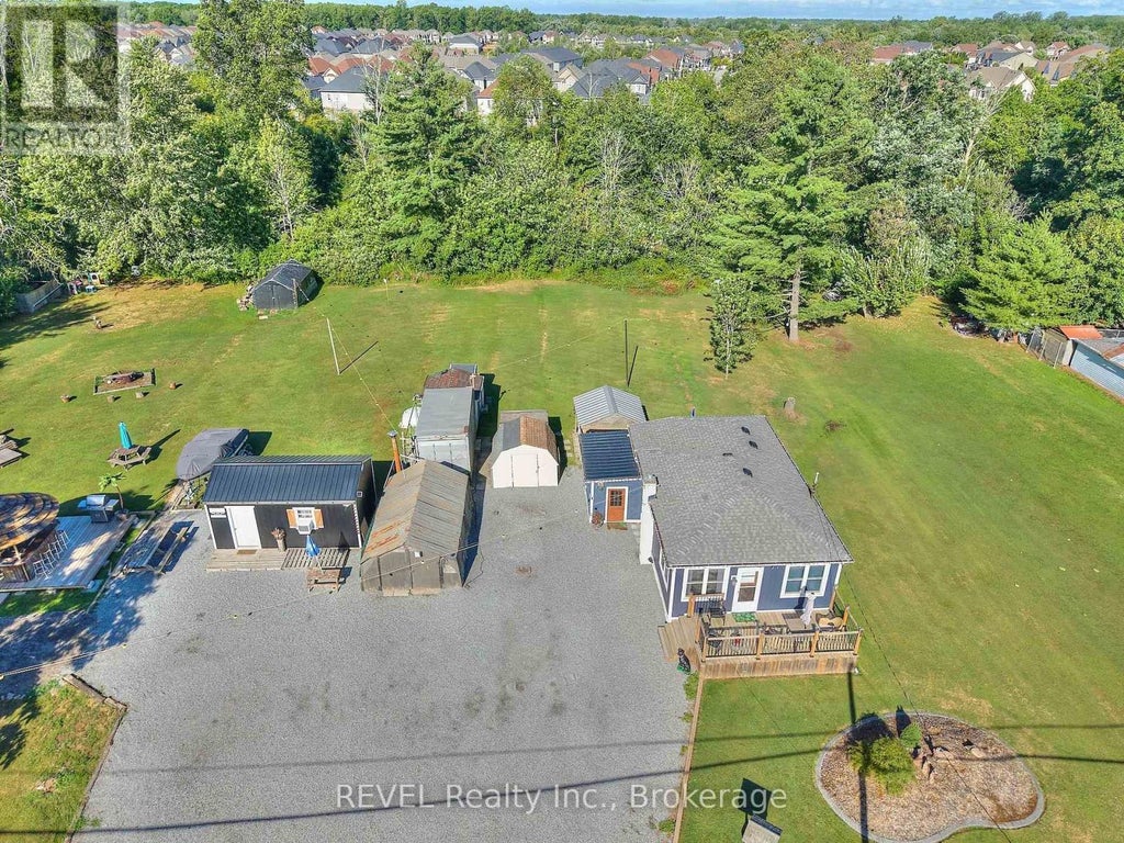 Welcome to 9197 Sodom Road, Niagara Falls a versatile property just shy of 1 acre in Chippawa. This 2-bedroom bungalow features a kitchen with a live edge countertop and walkout to the patio, a convenient mudroom entry, and an exterior shower. A separate office building with A/C provides additional workspace, complemented by 4 sheds and a shipping container for storage or hobby use. One of the sheds even includes a wood fireplace. Located near new developments, including the upcoming arena expansion and beautiful new homes sub-division, this property offers excellent potential for a builder, business owner, or anyone seeking more space. Chippawa Creek and boat launch are nearby. Property is being sold as is. Buyer to perform due diligence. (id:6289)