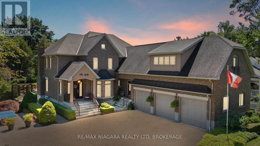 Enjoy luxury living with sophisticated style on one of Old Towns most desirable streets. This custom-built home blends timeless elegance with modern comfort. Nestled on over a third of an acre, the 4,500+ sq. ft. (above grade) residence features 6 bedrooms and 6 bathrooms, all finished with exceptional attention to detail.The chefs kitchen is the heart of the home, with premium Miele appliances including a coffee bar, steam oven, and warming oven, plus a large granite island and walk-in pantry. Walls of floor-to-ceiling windows flood the home with natural light, most strikingly in the stunning living room. Natural cherry hardwood flooring, custom millwork, and high-end finishes flow throughout, creating a warm, sophisticated atmosphere. The elegance extends to the formal dining room. A main-floor in-law suite with its own living room, fireplace, private deck, and separate entrance provides flexibility for guests or extended family.The showcase staircase leads upstairs to four bedrooms. The primary suite offers a spacious retreat with a double-sided fireplace, spa-like ensuite, and dressing room. A versatile bedroom with built-in shelving and Murphy bed adds further function, and a convenient second-floor laundry complements the layout. The semi-finished lower level includes radiant heated floors for year-round comfort.Car enthusiasts will appreciate the heated triple garage with nearly triple the height of a standard garage, plus a private suite above with separate entrance and full bathideal for guests, an office, or rental. The custom driveway accommodates up to 14 vehicles.The backyard is a private oasis with gorgeous landscaping, mature trees, and multiple decks overlooking the concrete saltwater pool with waterfall, styled to resemble a natural pond. This one-of-a-kind property captures the best of luxury living in beautiful Niagara-on-the-Lake. (id:6289)