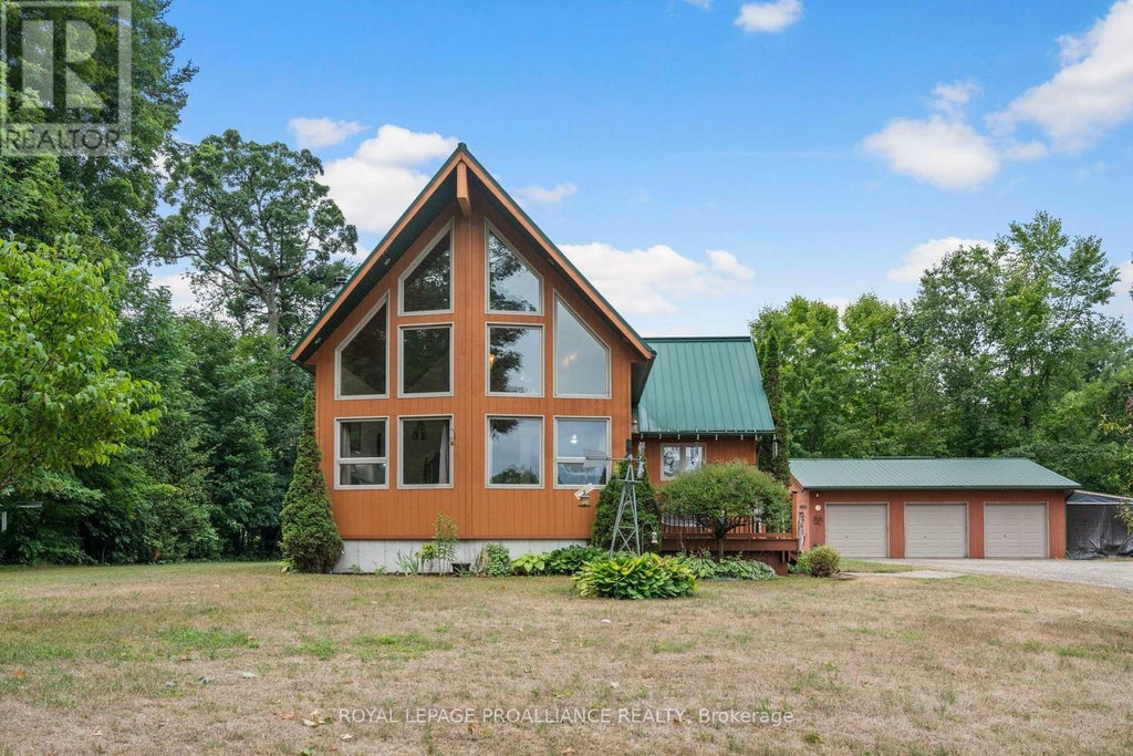 Tucked away on 2 peaceful acres with a welcoming tree-lined driveway and a picturesque pond, this property is a nature lovers delight. Step inside to a dramatic vaulted ceiling that floods the great room with natural light. The home features a spacious loft-style primary suite with its own 2-piece ensuite, offering a cozy retreat at the end of the day. A second bedroom and a convenient mud room/laundry room complete the main floor. Downstairs you will find a family room with an air tight wood stove, 3rd bedroom, and a storage room that is roughed in for a 3 piece bath. Outside, an impressive detached 3-bay garage provides excellent space for hobbies, tools, and storage. Nestled along a no exit road with access to hiking, ATV & snowmobiles trails. A rare offering that provides not just a home, but an unparalleled country lifestyle, perfect for those who crave adventure or serene escape. Please do not drive in the driveway without an appointment (dogs in the yard will be removed with a scheduled appointment). (id:6289)