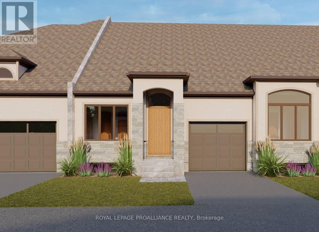 Welcome to Northgate Condominiums, a cozy community of townhome condominium units conveniently located just North of the 401 in Belleville, minutes from the Quinte Mall. This beautiful brand new bungalow townhome is currently under construction and will be move in ready December 2025. Featuring two bedrooms, two bathrooms and an attached one car garage with inside entry. The main floor is completed with 9ft ceilings and includes a well appointed kitchen with quartz countertops and corner pantry. The great room, located just off the kitchen, looks out to the 12' x 12' pressure treated wood deck. The bright primary bedroom includes a walk in closet as well as a 3-piece en-suite bathroom. The main floor is completed with an additional bedroom, main bathroom and a convenient laundry room. This home also includes a full unspoiled basement with basement bathroom rough in. ***OPEN HOUSE LOCATED AT MODEL HOME AT 2-99 CLOVERLEAF DRIVE*** (id:6289)