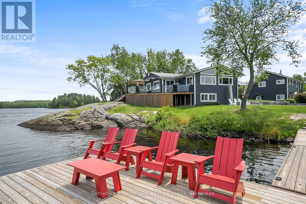 Welcome to 11D Bears Paw - Whether seeking privacy, flexibility, or long-term value, this exceptional point lot on beautiful Whitestone Lake checks every box. Full South exposure, offering 490 feet of shoreline, breath-taking sunrises and sunsets, deep-water access, and two fully serviced dwellings with manicured landscaping, this property is a rare find. The main dwelling offers just over 1900 sq. ft. of living space, featuring 2 bedrooms, 2 bathrooms, an open-concept layout, and expansive lake views. Just steps away, the detached garage with 1456 sq. ft. carriage house includes an additional 2 bedrooms, 1 bathroom, a 2-car garage, and a covered port with a third parking space perfect for guests, extended family, or income potential. Whether you're envisioning a private family retreat, multi-generational getaway, or a legacy waterfront property, opportunities like this with scale, seclusion, and versatility are increasingly limited in the region. A must-see for buyers prioritizing long lake views with great privacy! (id:6289)