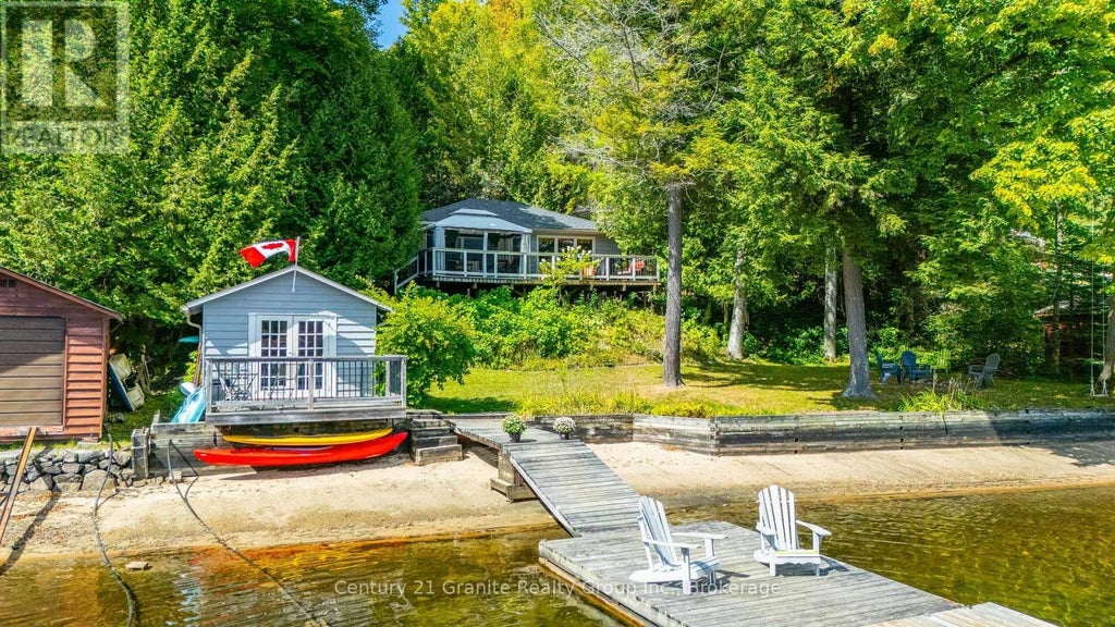 Welcome to your next cottage retreat on beautiful Horseshoe Lake, part of a scenic two-lake chain. This well-maintained, bright, and thoughtfully designed 3 season turnkey property features three bedrooms, a full bath, and maple hardwood floors throughout. Enjoy cozy evenings by the Vermont Castings wood insert, and peace of mind with a lake water system that includes filtration and UV treatment.Step outside to a classic cottage experience: a sandy beach with gentle, shallow entry for swimming and wading, plus deeper water off the dock for boating or jumping in. The large, flat grassy area between the cottage and the lake is ideal for outdoor games or simply relaxing by the water.The fully insulated, heated, and wired bunkie provides a queen-size Murphy bed, three-piece bath, laundry, and a sleeping loft perfect for guests. The boathouse, complete with a deck, offers extra space for entertaining, storage, and a workshop. Boathouses are a rare and valuable feature in Haliburton, as new ones can no longer be built.Located just a short drive from Minden for all your amenities, the property is accessed by a seasonal road. The renowned Minden Whitewater Preserve is at the end of the lake ideal for whitewater kayaking or enjoying the trails and rapids. Additional land across Shanahan Trail provides options for a garage, extra parking, or storage. If you are seeking a well-cared-for cottage with beautiful lake views and a sandy shoreline on a desirable lake, this property is move-in ready just bring your suitcase and start enjoying! Please note that one bedroom and one bathroom from the listing total count are located in the bunkie.. (id:6289)