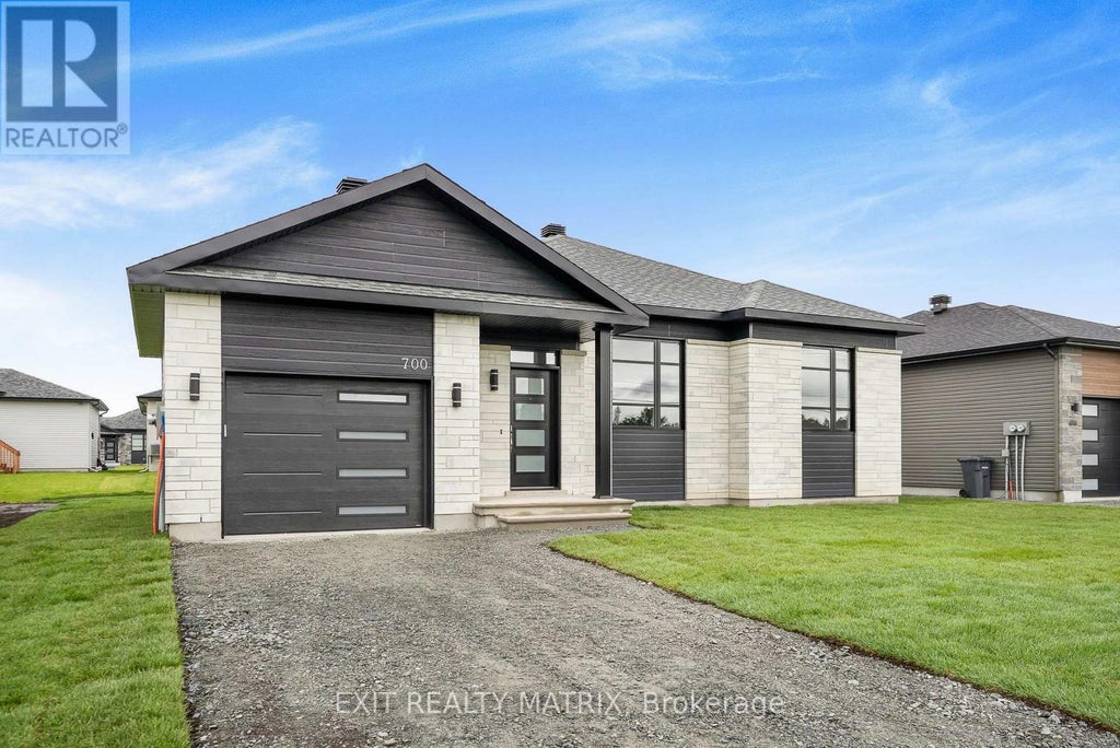 NEW CONSTRUCTION - AVAILABLE IMMEDIATELY - 1080 sq ft. - Be the first owner of this beautiful, quality newly built bungalow in Hawkesbury. Mosselaer Constructions is proud to present this 2 bedroom home with quality finishing. Main floor offers hardwood and ceramic floors, two tone kitchen with quartz countertops, a full bathroom with ceramic shower and separate bathtub. The unfinished basement offer space for additional bedrooms with ruff-in plumbing for a second bathroom. Energy efficient natural gas heating and central cooling. Enjoy the convenience of a rear covered deck. You'll be stunned by it's modern look complemented by a stone and CanExel facing, single car attached garage and stylish light fixtures. The open concept main living area is very practical. Located in a quiet neighborhood, in the new Henri Estate (Domaine Henri), walking distance from high school (ESCRH) and municipal park. (id:6289)