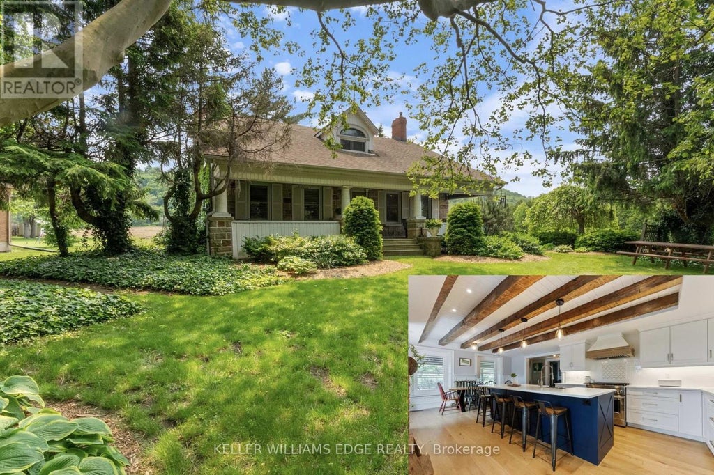 Homes today don't feel like this. That's because this one is packed with 178 years of character and charm affectionately known as Langside/Jacob Smith House. Wrapped in nearly 30,000 square feet at the edge of The Niagara Escarpment, this lot offers more than privacy - it is a statement! This modern farmhouse still hums with the rhythm of its past, while renovated with intention by Heartwood Renovations (@heartwoodrenovations) to suite your everyday needs. Modern quartz surfaces, gas range cooking, chef-inspired eat-in kitchen, a sprawling island, premium appliances, and a generous walk-in pantry located just off the convenient mud room entrance. Thoughtful touches in every square inch including a large covered front porch which offers the perfect spot to enjoy morning coffee or an evening nightcap all encircled by working farmland, the 104 x 280 lot breathes with the rhythm of the land. Wide, Still and Ready for your next chapter. Engineered hardwood flooring flows throughout, accented by exposed beams. Enjoy a spacious living room illuminated by pot lights and anchored by one of two inviting gas fireplaces. The bright family room, located in the rear extension, offers the perfect space for casual relaxation or entertaining guests. In addition, the well-equipped main floor laundry room with built-in storage adds functionality and everyday ease. Both children's bedroom includes a built-in desk, while the primary suite offers an abundance of natural light that pours through the large windows, along with two built-in closets. Additional highlights include central vac, an attached 1-car garage with inside entry, two electrical panels (home & garage), and ample built-in storage throughout. UNIQUE FEATURE: Includes an authentic root cellar. It stood the test of time. Now its your turn to shape what comes next! (id:6289)
