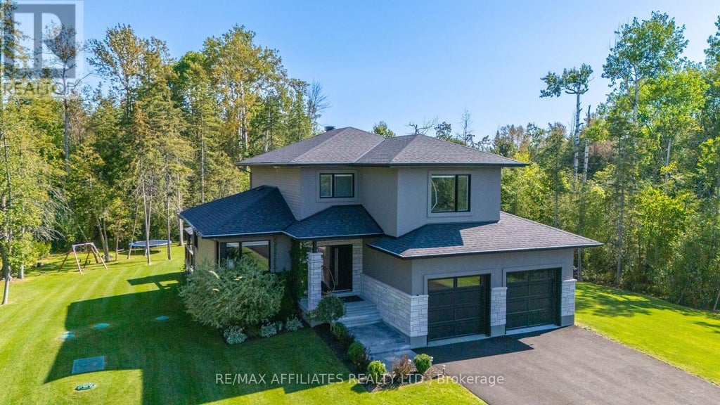 Nestled on a PRIVATE, TREED 1.13 ACRE Lot, this 2019 Tomar Home is a blend of modern luxury & peaceful country living. Long Paved Driveway leads to the Landscaped Yard w/IRRIGATION & Cozy Front Porch. Main Floor features Oak Hardwood, Modern Tile, 9FT Ceilings & a Spacious, Bright MAIN FLOOR DEN. The White Kitchen w/Bronze Handles is a chef's dream w/Lg Island w/Breakfast Bar, White Quartz Counters & Tile Backsplash, Pantry, SS Appliances including a Gas Stove w/Range Hood Fan. The Dining Area opens to a Lg, Private Deck w/Gazebo Surrounded by Mature Trees for Complete Privacy. The Spacious Living Rm has a Cozy Gas Fireplace w/Barn Board Mantle & Wood Shelves w/wall-to-wall windows. Convenient Mudroom off Garage (w/11' Ceilings) & Powder Bath w/Funky tile w/Black Accents. Hardwood Stairs & 2nd Level Landing lead to 3 Bedrooms & 2ND FL LAUNDRY. Primary Suite offers a WIC & 4PC Spa-Like Ensuite w/Hexagon Tile, Floating Double Vanity & Large Glass Shower. Modern Full Bath w/Lg Wood Vanity w/Quartz Counters & Hexagon 2 inch tiled floors & Modern White Subway in the Shower. Fully Fin Basement adds a Family Rm & 4th Bedroom w/Wide Plank Vinyl Floors, Lg Windows & Pot Lights + a Modern 3PC Bath w/Floating Vanity & Lg Glass Shower. Backyard is a PRIVATE OASIS! Features a Lg Deck, Gazebo w/Lights, Above Ground Pool, Firepit area, Surrounded by Mature Trees w/Plenty of room for the kids to play. Estate Neighbourhood on a Private Quiet, Corner Lot just 15 min to Kanata, 14 min to Almonte & 10 min to Carleton Place, it's the perfect location & is Move in Ready! 24HR IRREV on all offers. (id:6289)