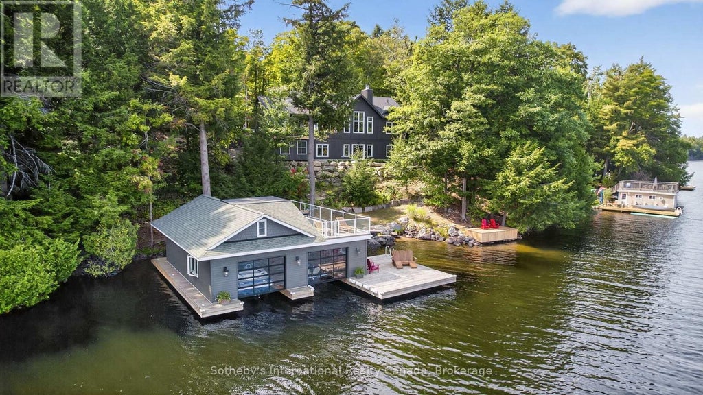 An extraordinary Lake Muskoka estate offering 220 ft of private shoreline, 1.49 acres of landscaped grounds, and sweeping views across the quiet waters of North Bay. Cherished by the same family for over 30 years, this property combines elegance with Muskoka character. The 2020-built cottage, paired with a two-slip boathouse constructed in 2015, delivers the complete waterfront lifestyle. Crisp white shiplap walls accented by natural tones create a fresh, timeless backdrop, while expansive windows fill the interiors with natural light. The great room, with vaulted ceiling, floor-to-ceiling windows, and a propane fireplace, offers an inviting space to gather with family and friends. A chef's kitchen with a large island anchors the home, flowing seamlessly into the dining room where meals are shared with views that bring the lake into focus. Extend living into every season in the Muskoka Room, a four-season retreat where nature is ever-present. Designed with comfort in mind, the cottage offers 4 bedrooms and 2.5 baths, including a main-floor primary suite with spa-inspired ensuite and walk-in closet. The finished walkout lower level features a rec room with a second fireplace, ideal for movie nights or guest space, plus 3 additional bedrooms and a full bath. Outdoors, granite steps lead to the water's edge, where a sandy entry is perfect for children, complemented by deep waters ideal for boating, diving, and swimming. The two-slip wet boathouse with upper sundeck is the ultimate spot for sun-soaked afternoons or cocktails as the sky glows over the lake. North Bay is ideal for canoeing and kayaking, offering the intimacy of a smaller lake while connecting to the open waters of Lake Muskoka for full days of adventure. Just minutes from Port Carling and its vibrant dining, golf, and boutique shopping, this generational property presents a rare opportunity to create lasting Muskoka memories in a setting of true elegance. (id:6289)