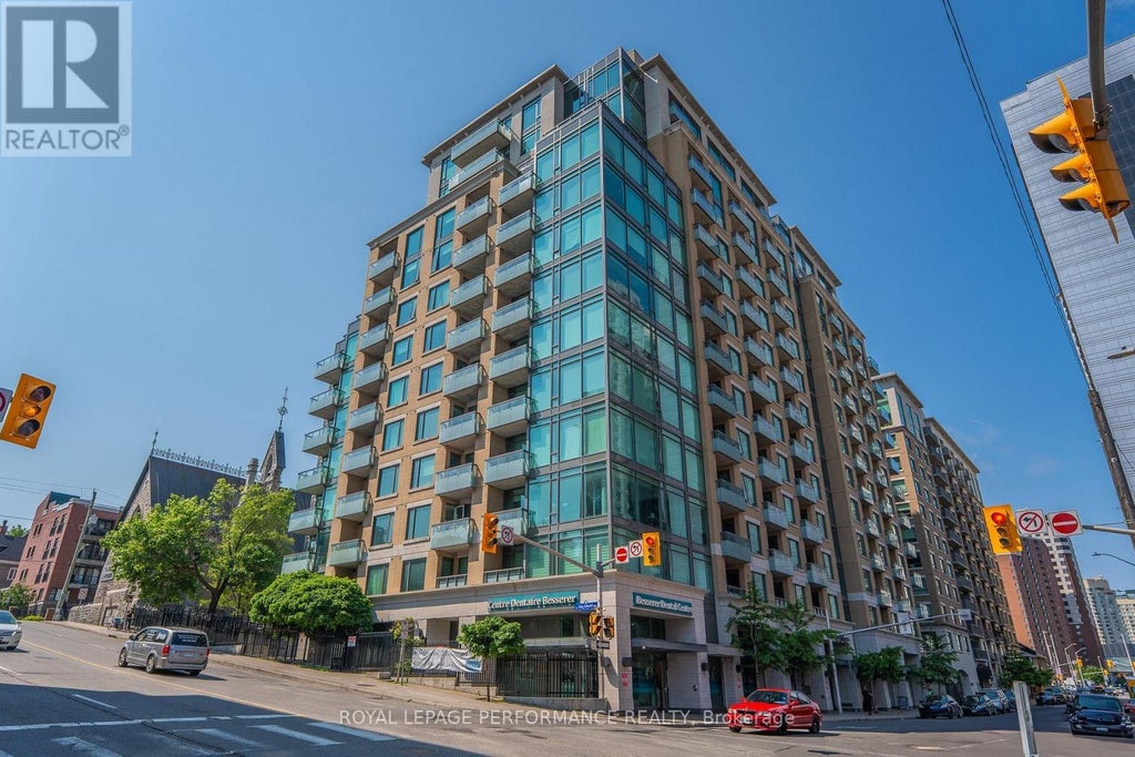 Life at the Top! Embrace penthouse living in the heart of Canada's Capital City! This fabulous 2 bed, 2 bath corner suite entices with over 900 sqft (per Builders plan) of open-concept living space and 180 degree panoramic southern views that captivate with an ever-changing canvas of light and colour. Whether you're admiring Parliament Hill at sunrise or savouring the downtown skyline at sunset, the year-round vistas will never disappoint.Featuring a thoughtfully layout designed for maximum privacy, this executive residence offers instant appeal to professionals, downsizers, or investors seeking a high-end portfolio piece in a premium location. Hardwood floors and expansive walls of glass flow through the living, dining, and kitchen areas, while granite counters, convenient breakfast bar and stainless steel appliances complete the modern eat-in kitchen. The spacious primary provides a dedicated ensuite and ample closet space. The second bedroom is perfect for guests or a home office and well complimented by the adjacent full bath. Escape the ordinary on your rare and sizeable private balcony, an inviting retreat for morning coffee and the perfect backdrop to host al fresco cocktails.Complete with underground parking (P1-23), storage locker (S1-58) and high-function building amenities including heated indoor pool, gym, sauna and party room plus appealing all-inclusive condo fees.Enviably situated at the intersection of the historic ByWard Market and Sandy Hill just steps to Parliament, LRT, the Rideau Canal, the University of Ottawa and ready access to the city core. Create a lifestyle at The Galleria II, 238 Besserer Street! No conveyance of offers without minimum 48hours irrevocable (id:6289)