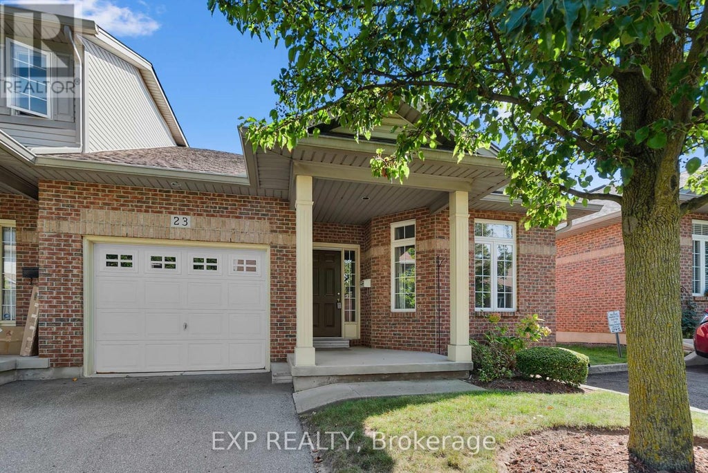 Welcome to 23-5595 Drummond Road, Niagara Falls. Discover the ease and comfort of one-level living in this beautifully maintained, move-in ready bungalow townhome, ideally situated in the heart of Niagara Falls. Enjoy the convenience of being close to shopping, amenities, and highway access all just minutes away. Step inside of a bright and spacious foyer that sets the tone for the rest of the home. French doors open into a versatile second bedroom featuring double closets perfect for guests or a home office. You'll also appreciate the inside entry to the attached single-car garage for added convenience. The open-concept kitchen, dining, and living areas are enhanced by soaring vaulted ceilings and a cozy gas fireplace. Sliding patio doors lead to your private wood deck, the perfect space to relax or entertain. The oversized primary bedroom offers a generous 7x7 walk-in closet and ensuite bathroom. Hidden behind closet doors on the main level you'll find laundry, offering true main-floor functionality. Downstairs, the full basement awaits your personal touch and includes a finished 3-piece bathroom a great bonus space with endless potential. Located in the quiet and sought-after community of Drummond Court, this home offers a low-maintenance lifestyle without compromise. Don't miss your opportunity to make this exceptional townhome yours. (id:6289)
