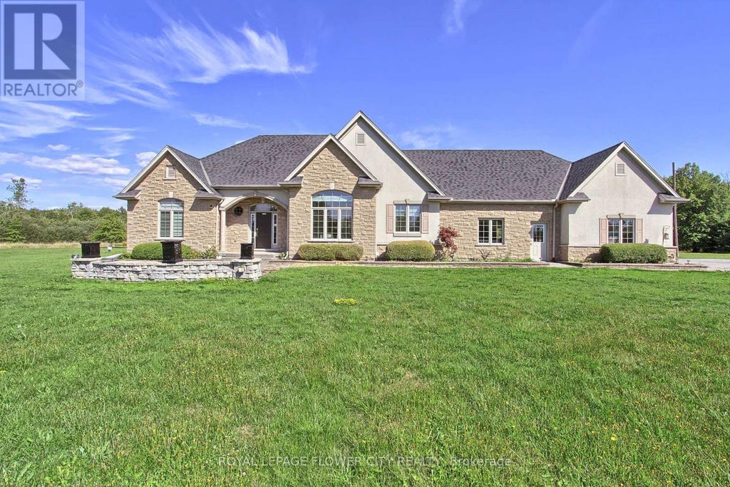 Imagine coming home to your own private 19-5 acre sanctuary, just 20 minutes from Niagara Falls and St. Catharines. This approx. 3,900 sq. ft. bungalow blends comfort and elegance with soaring ceilings, hardwood floors, a sunlit great room with fireplace, and a spacious kitchen and dining area perfect for family gatherings. The full-size finished basement offers endless possibilities for extra living, entertaining, or storage, while the 27-foot covered patio invites year-round enjoyment. Set on a 5-acre estate lot and surrounded by 14.5 acres of preserved forest, this property delivers unmatched peace, privacy, and natural beauty the perfect escape from city chaos to country calm. Whether you are looking for a forever home or a weekend retreat, this is the lifestyle upgrade you have been dreaming of. (id:6289)