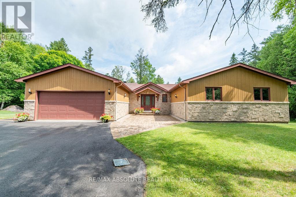 Located in a quiet, family-oriented community, this spacious WALKOUT BUNGALOW SITS ON 2.4 ACRES W/ DOUBLE GAR + DETACHED TRIPLE CAR GARAGE! Enjoy easy access to nature, recreation, and amenities 20 minutes or less to Kanata, Almonte, Arnprior, Pakenham, Fitzroy Provincial Park, Morris Island, and the Carp Farmers' Market. The beautifully landscaped lot features lush gardens for curb appeal, raised garden beds, a shed for tools, and a firepit -- just add Adirondack chairs. A wide interlock walkway leads to a stunning wood and stone exterior with a double attached garage and a detached triple garage (insulated, with hydro, propane heater, and rough-in for radiant heat). Inside, the oversized foyer opens to a bright living room with cherry Jatoba hardwood and ceramic tile. The kitchen features solid cherry cabinetry, a full wall of storage, and opens to the dining area with patio doors to a spacious deck with BBQ hookup. The primary suite offers serene backyard views, a walk-in closet with organizer, and a 4-pc ensuite with soaker tub and separate shower. Two additional main floor bedrooms also feature walk-in closets. Powder room and a full laundry room with sink and cabinetry complete this level. The lower-level walkout includes a large family room, office/den, two more bedrooms, 3-pc bath, and a huge storage room. Two paved driveways, curbside garbage pickup, mail delivery, and school bus service add to the convenience of this move-in ready home. Lovely neighbours and a peaceful setting. Just moments from Hwy 417. (id:6289)