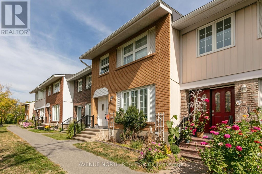 This unique 4-bedroom townhouse sits directly across from South Keys Mall, offering unbeatable convenience while maintaining privacy. Grocery stores, shopping, movie theatres, and public transit are all just steps away. Inside, the main level features spacious living and dining rooms, perfect for entertaining, along with a bright kitchen that offers ample cabinet and counter space, an eat-in area, and direct access to the fenced backyard with a shed. Upstairs, you will find four generously sized bedrooms and a full bathroom. The finished basement adds valuable living space, complete with a den, full bathroom, and laundry. No carpet throughout the home makes it easy to keep clean. An exterior parking spot is also included and located just around the corner. This home is a rare opportunity and perfect for those looking for a spacious home at an affordable price. (id:6289)
