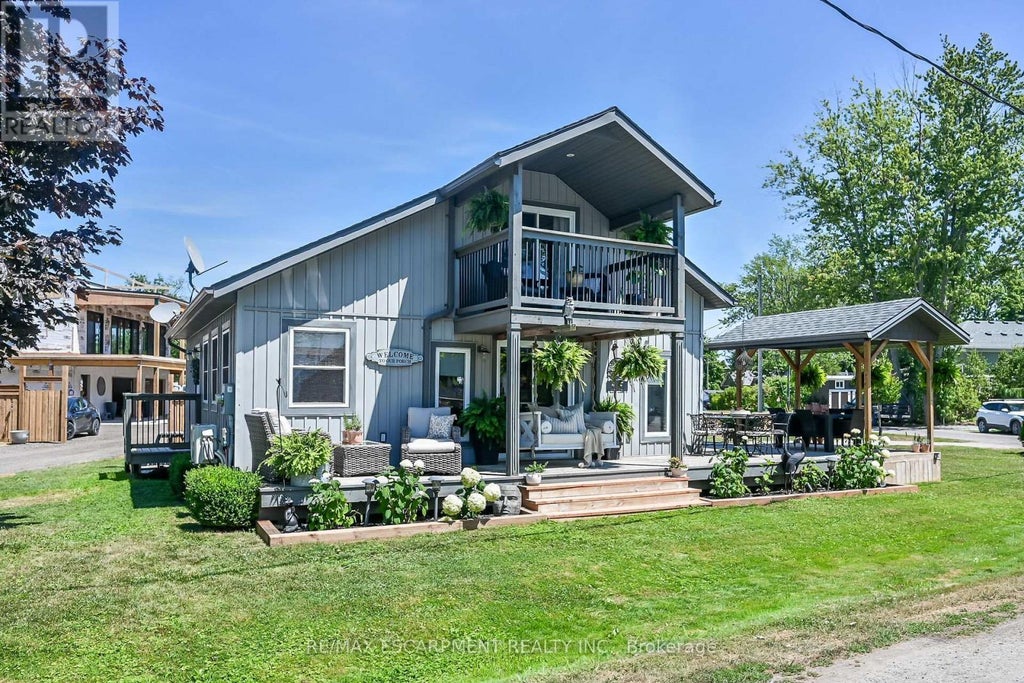 Located in the waterfront community of Peacock Point, this impeccably refreshed 1-storey retreat delivers 1,125 sq. ft. of stylish living with views of Lake Erie. Completely reimagined in 2022, the heart of the home is a chefs kitchen finished with quartz countertops, custom cabinetry, stainless-steel appliances and double prep sinks, ideal for effortless entertaining or intimate family meals. The primary suite extends to a private balcony and provides Lake Erie views, offering a daily reminder of peaceful living. A second balcony off the upstairs landing provides an additional opportunity of relaxation and gentle breezes. Step outside onto the wrap-around deck, perfect for summer barbecues, morning coffee or evening cocktails. Wall-mounted A/C units installed in 2024 and fully winterization ensure year-round comfort. Quiet and welcoming, this turnkey home strikes the perfect balance between cottage charm and contemporary design. Whether you're seeking a year-round residence or a weekend getaway, this Peacock Point gem invites you to embrace Lake community living in style. (id:6289)