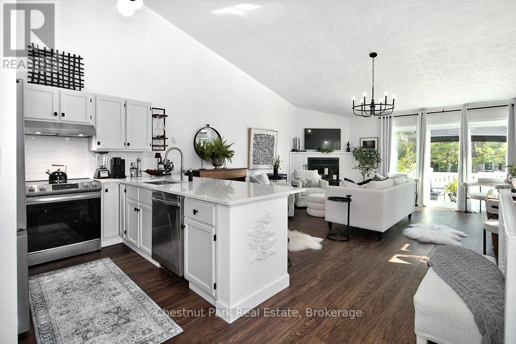 Discover a Hidden Gem in Brookside. Renovated with quality, style and Home & Gardens decor. Fall in love with over 1,400 square feet of style on 2 levels. Lower level family room has sliding glass doors to a walk out to the garden. The main level great room walks out to a new deck with privacy nook. The cozy front porch overlooks the spacious corner garden. Extraordinary opportunity. "A GEM". A 7 minute walk to the beach and a 20 minute drive to Georgian Peaks. Private entrance with covered porch and end unit. Approximately $100,000. spent on renovations. A Must See! (id:6289)