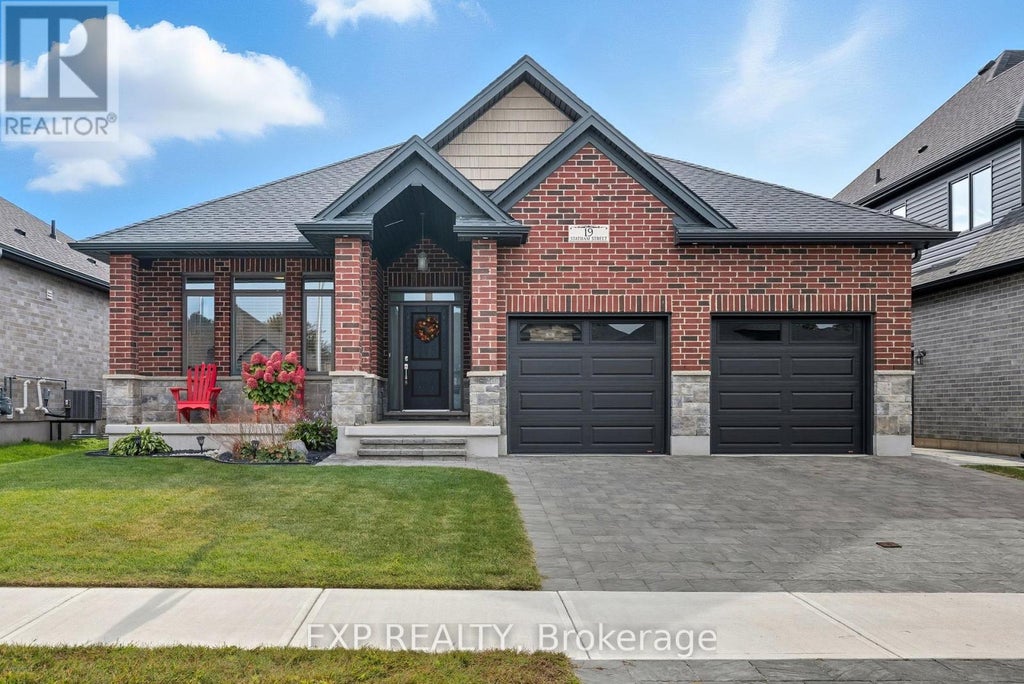 Welcome to Prestigious South Grove Meadows 19 Statham Street, a stunning Dwyer-built all-brick home tucked away on a quiet inside street with minimal traffic, just minutes from Caradoc Sands Golf Club. Sitting on a generous 130 ft lot, this 2+2 bedroom, 3 full bath property showcases thoughtful upgrades, timeless finishes, and a warm open-concept design. Step inside to find a bright, airy main floor with added windows for natural light, a cozy living room fireplace, and a gourmet kitchen featuring granite countertops, stainless steel appliances, a large island, walk-in corner pantry, and sleek black sink. The primary suite offers a walk-in closet and private ensuite, while the second main-floor bedroom is ideal for guests or a home office. The fully finished lower level includes 2 additional bedrooms (one with walk-in closet), a full bathroom with heated floors, a spacious family room with a gas fireplace, and soundproofing upgrades for ultimate comfort. Outside, enjoy a 7ft fenced backyard, stamped poured concrete patio, extended covered porch, perfect for entertaining or relaxing in your private retreat. The homes exterior is designed for low maintenance with aluminum-wrapped posts, stone skirt with brick accents, and upgraded black garage doors.Additional features include: Double car garage, central vac, CAT-6 wiring in every room, window coverings (Levolor blinds upstairs, blackout blinds downstairs), Quartz countertops in all upstairs baths, Noise insulation upgrades between levels. On demand tankless water heater. This move-in ready home is close to schools, parks, shopping, dining, and recreational facilities making it an exceptional choice for modern living in Strathroy. (id:6289)