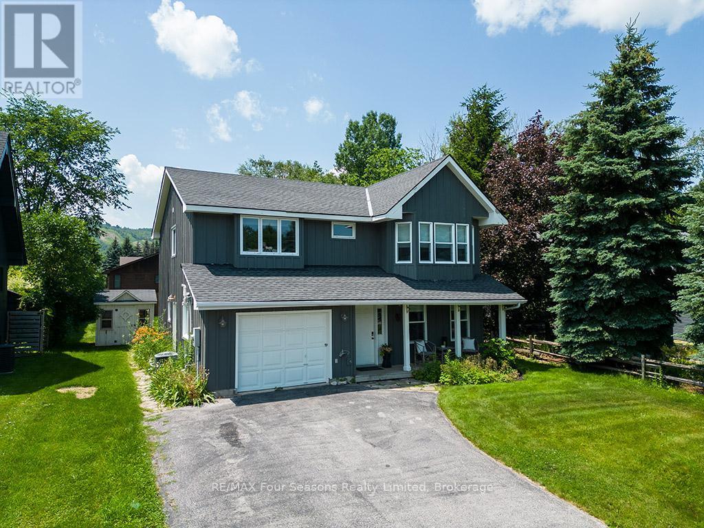 Walk to Blue Mountain Village! This bright and inviting 4-bedroom, 3-bathroom home is tucked away on a quiet cul-de-sac, just steps from Blue Mountain Village and only minutes to beaches, ski clubs, golf, and trails, perfect for year-round living and recreation. Designed with a reverse floor plan to capture the best mountain views, this home offers space, comfort, and convenience for today's active lifestyle. The main level features a spacious recreation room with a cozy gas fireplace, two bedrooms, a full 4-piece bath, and a laundry room with a walkout to the backyard and patio, ideal for indoor-outdoor living in every season. Upstairs, the open-concept kitchen, dining, and living area is filled with natural light and mountain views. The kitchen boasts granite countertops, a large open pantry, and direct access to the upper deck for effortless BBQs and dining al fresco while enjoying sunsets over the slopes. The living room's abundance of windows creates a warm and welcoming gathering space. The upper level also hosts the primary suite with a sleek, renovated 3-piece ensuite, plus a fourth bedroom and an additional 4-piece bathroom. Outdoor enthusiasts will appreciate the proximity to hiking, cycling, tennis, and golf, along with the nearby beaches of Georgian Bay. Just 10 minutes to Collingwood, 15 to Thornbury, or a short stroll to Blue Mountain Village for dining, shopping, and entertainment, this property offers the perfect blend of lifestyle and location. (id:6289)