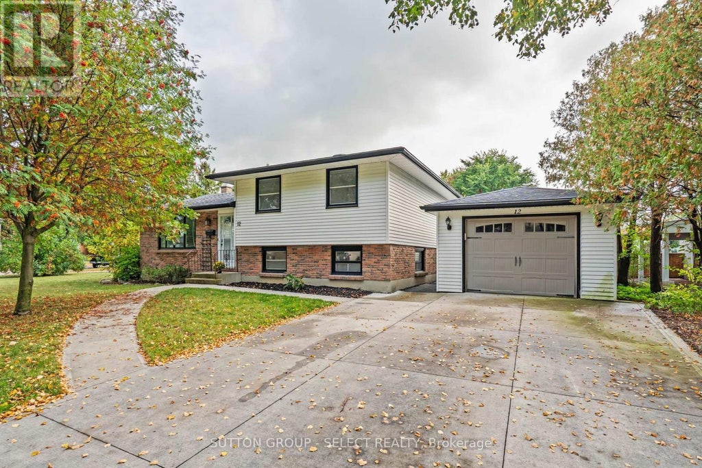 Nestled on a peaceful, tree-lined corner lot in the desirable Westminster neighbourhood, this functional 4-level side-split at 12 Kinburn Crescent offers the perfect blend of space and serenity. Step inside and be welcomed by the large, open-concept living room which flows effortlessly into the kitchen and dining area. The kitchen island is a chef's delight, offering not just ample prep space but more storage and a fantastic spot for guests to gather and socialize. The kitchen's rear door provides seamless access to the wood deck and hot tub, your private oasis for relaxation. Upstairs, the 3 good-sized bedrooms share a renovated 3-piece bathroom with convenient cheater access to the primary bedroom. The first lower level offers superb flexibility, featuring a bright family room, a second full 5-piece bathroom, and a private 4th bedroom, also perfect for a home office. The lowest level boasts a large, finished recreation room, ideal for a home gym or theatre room, plus a dedicated utility room with laundry. Outside, enjoy the convenience of a detached garage with hydro and a newer poured concrete walkway and driveway with parking for 4 cars. This prime location offers easy access to transit, scenic trails, parks, schools, the 401, and all the retail amenities you could ever need. Don't miss the opportunity to make this your new home! (id:6289)