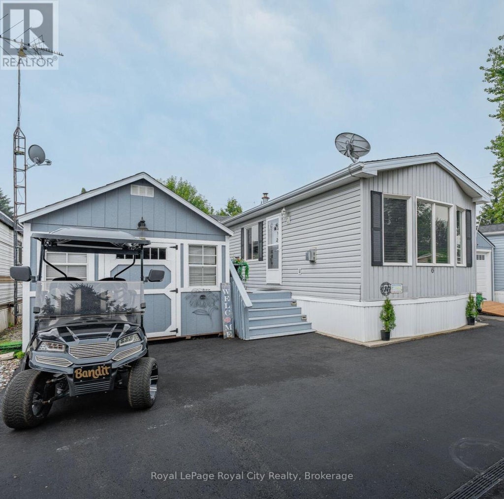 Fall in love with the Mini lakes lifestyle. This charming home is located in a year round gated community and is perfectly situated on a quiet, private lot where the outdoor living is just as inviting as indoor living. Unwind under the gazebo on the deck, lounge on the patio listening to the breeze in the trees, or stargaze on clear nights, this is relaxation at its best. Inside, you'll find all the comforts of home with plenty of charm, including a cozy natural gas fireplace with a beautiful stone surround and mantel. The open-concept living area is ideal for entertaining or simply enjoying everyday life, whether you're cooking dinner or catching up on your favourite show, you're always part of the conversation. Down the hall, the primary bedroom is peacefully tucked away at the back of the home, perfect for sleeping with the window open letting in the fresh country air. A well-appointed bathroom with a bright skylight sits conveniently between the primary and second bedroom, offering privacy and functionality. But the true magic of Mini Lakes lies beyond your door. Explore scenic canals, creeks, and the lake perfect for floating, paddling, or simply soaking up the sun. Invite friends and family to the heated pool for lazy afternoons, and don't miss the annual kids' fishing derby, a local favourite. With a vibrant community spirit and activities for every interest-bocce, cards, darts, golf tournaments, walking clubs, and more you'll never run out of things to do. The driveway has been freshly paved and there is plenty of room to park your GOLF CART, which is available to purchase or MAY BE INCLUDED IN THE SALE! Whether you're looking for a peaceful retreat or a fun-filled lifestyle, this home and Resort Style Community have it all. (id:6289)