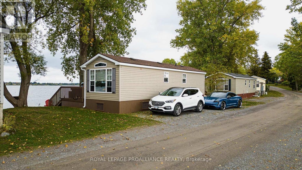 Absolutely one of the best WATERFRONT lots in the Park! Not only is it located on the sought after Peninsula of Cherry Beach, but this stunning lot is also located on a lot with unobstructed water views on both sides. This part of the peninsula only has trailers on one side of the road, providing the ultimate in waterfront enjoyment. No matter which window you look out of, you will see water. On the Southeast side there is Flakes Cove, a quiet Bay off of East Lake, offering docking, boat launch & fantastic sand beach with water toys. The Northwest side of the unit is beautiful East Lake, offering breathtaking panoramic views & glorious sunsets. This particular lot offers approximately 60ft of East Lake sandy shoreline & a tiered lot boasting natural rocks, mature trees, landscaping & firepit near the waters edge. Other outdoor features include a 35ft x 10ft rear deck overlooking the water, interlocking walkway with lighting, storage shed plus all exterior furniture & accessories. Inside this 2012 Ash model has 2 bdrms & 1 bath & can sleep up to 7 persons, including use of the pull out couch. All interior furnishings, appliances & accessories are included for a turn-key summer experience. Unit is in great condition with a newer large picture window at the end of unit, forced air propane furnace for those cooler nights, C/Air, surround sound speakers & T.V, & patio door from the living rm, leading to rear deck. Spare bdrm has dbl bunks & sleeps 3 plus the primary bdrm has built-in cabinetry & Queen bed. Affordable summer time fun in a great park with several amenities such as: heated pool, multi-purpose basketball & tennis courts, splash pad, rec centre, playground, boat docks, food truck & more. Cherry Beach is a seasonal Park located in Cherry Valley, Prince Edward County only 7 minutes to Sandbanks Prov. Park. Park is open May 1 to Oct. 31. Annual Park fees $16,015 +HST & include: land lease, taxes, grass cutting, hydro & park amenities. Staycation all summer long (id:6289)