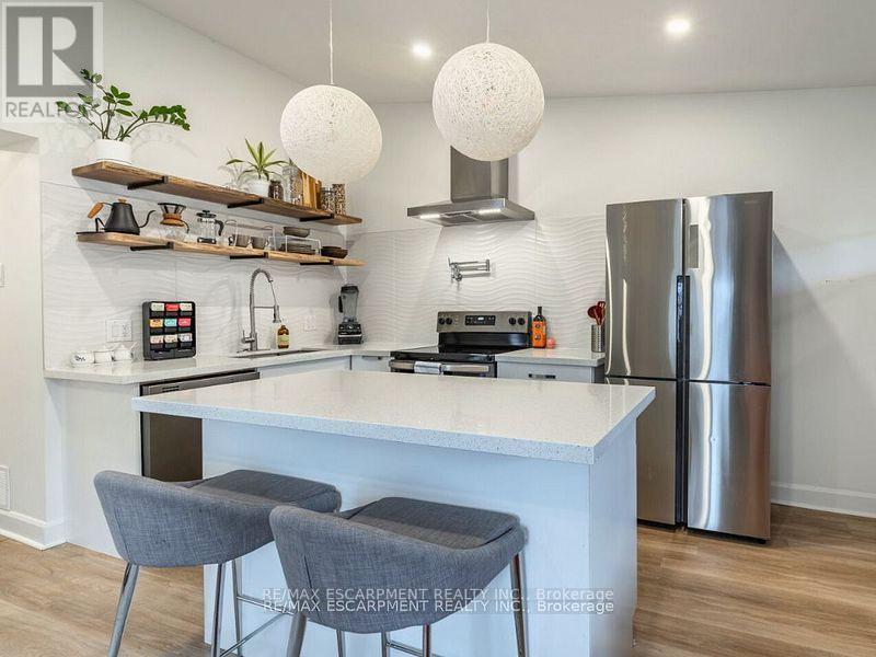 Just a 6-minute walk to vibrant Ottawa Street! This beautifully updated 2 bedroom, 1 bathroom home offers a maintenance-free backyard designed for entertaining while enjoying the perks of the Crown Point neighbourhood. The spacious front lawn features five large garden beds - perfect for growing fresh vegetables and herbs. A long driveway with parking for three leads up to the welcoming front porch with a newly built railing. Inside, natural light pours through the home from morning to evening, creating the perfect environment for thriving houseplants. The open-concept living room and kitchen with new flooring (installed 2022) are ideal for gatherings. The kitchen is outfitted with quartz countertops, stainless steel appliances - including a built-in dishwasher, wine fridge, and convenient pot filler. The updated 3-piece bathroom boasts brand-new tile and in-suite laundry with a folding counter for added functionality. Step out to the backyard and enjoy the large partially covered deck, which leads to a finished, insulated bonus space with hydro. Whether you're looking for an office, workshop, yoga or art studio, the possibilities are endless. An additional insulated storage room with a separate entrance provides space for tools or could even be transformed into a sauna retreat. With Hamilton's trendiest restaurants just steps away, you'll love hosting friends for a cocktail at your new home before strolling to the patios of Ottawa Street. (id:6289)