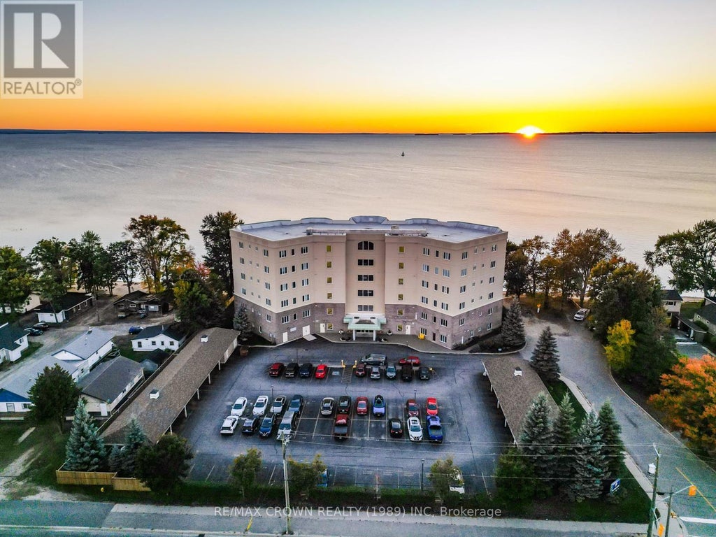 Experience luxury waterfront living at its finest in this stunning condo on the shores of Lake Nipissing. Featuring western exposure, this residence offers breathtaking, unobstructed views of the lake and spectacular sunsets from your private balcony , the perfect place to relax and take in the peaceful surroundings. Inside, large windows fill the space with natural light and frame the beautiful water views. The open-concept kitchen and living room create a bright, inviting space ideal for entertaining or unwinding at the end of the day. The layout includes a spacious primary bedroom overlooking the lake, a versatile den, a 4-piece bathroom, and an in-suite laundry/storage room. Enjoy the convenience of a dedicated parking space located close to the building, along with a private storage locker for your seasonal or recreational items. Built to modern standards, this newer construction ensures comfort and peace of mind. Step outside to a sandy beach just moments away and embrace the natural beauty of Lake Nipissing. Located close to shopping, dining, and entertainment, this is a rare opportunity to experience a luxurious waterfront lifestyle right here in North Bay. (id:6289)