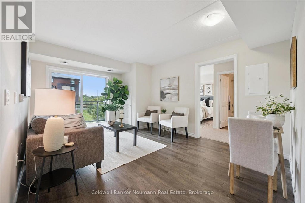 Welcome to the Madison at 7 Kay Cres. This bright and spacious 905 sq. ft., 2-bedroom, 2-bathroom condo is designed with functionality and comfort in mind - giving you more usable space than most layouts you'll find in South Guelph. The kitchen sets the tone with sleek grey cabinetry, crisp white counters, stainless steel appliances, and an abundance of prep space for the home chef. The open-concept living and dining area is generous in size, allowing you to arrange it exactly how you like - perfect for relaxing nights in or hosting friends. Unlike many condos where bedrooms feel like an afterthought, both bedrooms here are truly impressive. The primary easily accommodates larger furniture and comes with a private ensuite. The second bedroom? Equally spacious, ideal for guests, kids, or even a roommate, without anyone compromising on comfort. This unit also includes a storage locker for all the extras you don't need day-to-day, plus the lower level provides access to fantastic building amenities: a fitness room, party room with kitchen, lounge space, and billiards. Set in the heart of South Guelph, you'll love the convenience of being steps to major amenities, close to the University of Guelph, minutes to highway access, and surrounded by trails and parks. If you've been searching for a condo that actually feels like home, this is the one. Book your private showing today! (id:6289)