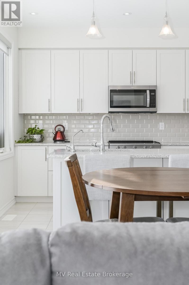 NEW PRICE -make your move before the snow flies!** This nearly-new, carpet-free home blends thoughtful design with everyday comfort in one of Centre Wellington's most up-and-coming neighbourhoods. Just steps from a brand-new school, scenic parks, and winding trails, it's the perfect setting for families seeking both convenience and connection. Inside, the bright, modern kitchen is the heart of the home-featuring a large centre island with built-in sink, sleek cabinetry, and stylish finishes. Whether it's casual breakfasts or weekend entertaining, this space was made for gathering. A formal dining room adds elegance, while the cozy living room with gas fireplace invites quiet evenings in. Upstairs, the spacious primary suite offers a true retreat with a walk-in closet and spa-inspired ensuite: double sinks, walk-in shower, and a relaxing soaker tub. Blinds throughout add privacy and polish, complementing the home's upgraded finishes in every room. Move-in ready and priced to sell, this is your chance to settle in before winter. Don't wait-your next chapter starts here. (id:6289)