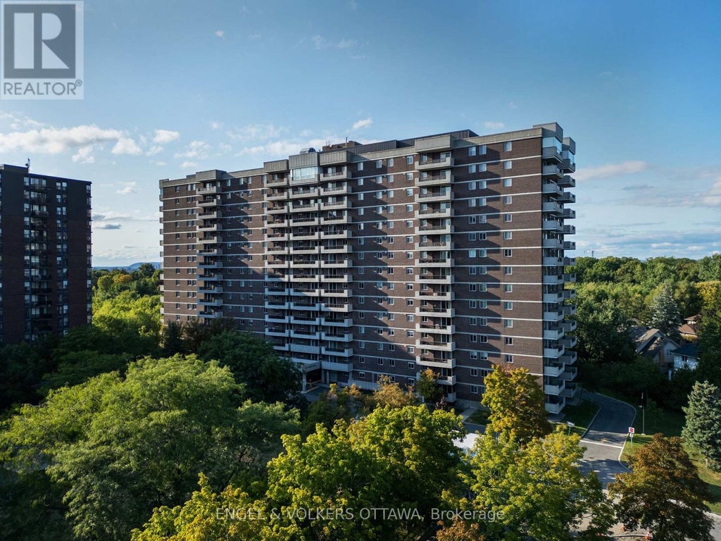 Step into this beautifully updated 2-bedroom, 2-bathroom condo, where design meets everyday comfort in a thoughtfully planned layout. From the moment you enter, you're greeted by a bright and airy open-concept living area that sets the tone for the entire home. Large windows allow natural light to pour in, highlighting the rich engineered hardwood floors that flow seamlessly throughout the main living spaces. The open design creates a sense of continuity and connection between the kitchen, dining, and living areas - perfect for both relaxing and entertaining. The kitchen has undergone a stunning transformation, with the wall between the kitchen and dining room removed to create an expansive, open layout that enhances both functionality and flow. It features sleek stainless steel appliances, including built-in wine storage, striking quartz countertops, recessed lighting, and ample cabinetry. Adjacent to the kitchen, the dining area provides an inviting space for gatherings and everyday meals. Sliding glass doors extend the living space to a private balcony, where you can unwind while enjoying tranquil views of mature trees and lush greenery. The generous primary bedroom features a walk-in closet and an updated 4-piece ensuite bathroom, complete with a tub and shower. The second bedroom is equally versatile, offering plenty of natural light and closet space - ideal as a guest room, home office, or personal fitness area. A second 4-piece bathroom continues the modern aesthetic, while a dedicated laundry closet with a stacked washer and dryer adds everyday convenience. Ideally suited for young professionals and downsizers, this condo is in an unbeatable location. Just minutes from downtown Ottawa, residents enjoy easy access to major roadways, shopping, dining, and an abundance of parks and walking trails. (id:6289)