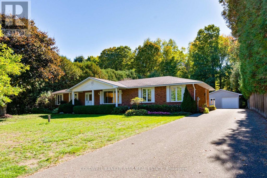 Large, country ranch style home located in the Hamlet of Copenhagen, on a 3/4 acre lot, less than 10 minutes from Aylmer and only 4 minutes from the north shore of Lake Erie at Pt Bruce. An easy commute to St Thomas, Tillsonburg, Ingersoll, Woodstock and Highway 401. Enjoy beaches, restaurants, campgrounds and fishing almost at your doorstep. This property features 5 bedrooms, 2 full baths (one is a cheater en-suite), a large country kitchen, dining room/eating area with views and access onto the sundeck and rear yard, a large bright living room with bay window, and much more. The home is laid out with multi-generational living in mind with bedrooms and bathrooms at each end. The lower level is unspoiled and awaits your finishing touch. The 31' X 21' detached garage/shop is a pole barn and has hydro. Enjoy country living in a small rural subdivision setting. All measurements are taken from iGuide, see floorplans in photos. (id:6289)