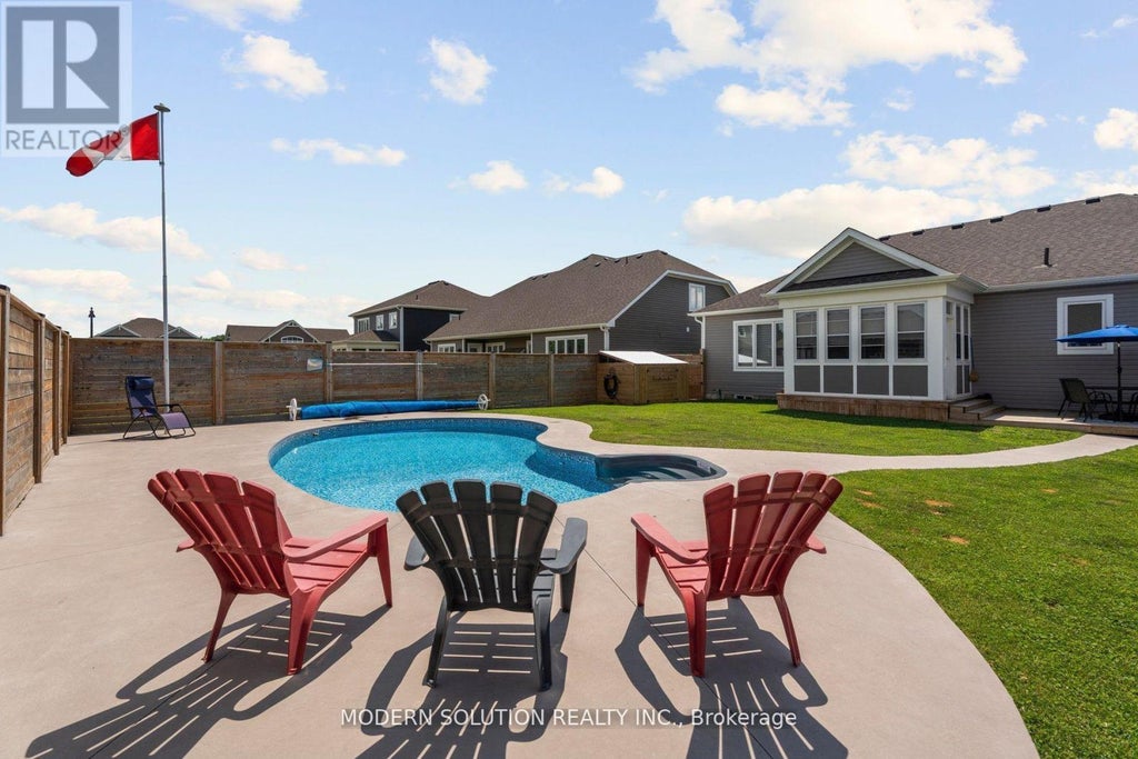 Stunning and extensively upgraded. 2-bedroom + Den, 2-bathroom bungalow located in the desirable White Pines community. The open concept layout features 9' ceilings throughout the main level, creating a bright and inviting ambiance at this property! Upgraded Hardwood & Tile throughout. Ideal for family-oriented living, it boasts a generous backyard complete with an Inground Pool! This home is conveniently situated within walking distance to the Sportsplex and local schools. Enhancements include: a high-end custom kitchen with seamless upgrades, Custom Closet in Primary Bdrm with addt'l closet, Automated blinds throughout, Upgraded Lighting, Muskoka Rm glass windows, Quartz Counter tops, Fully insulated/drywalled Garage with door to house, Electronic Air Cleaner, Humidifier, Central Air, storm door and back gate. (id:6289)